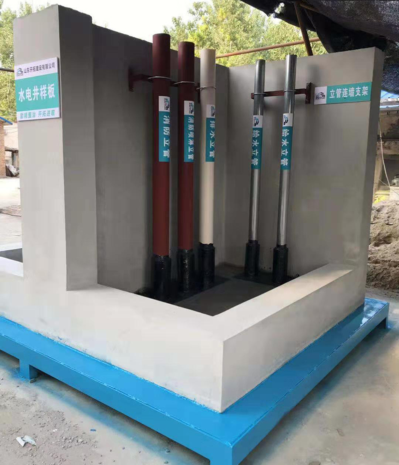 材質及做法:水井安裝地漏,給排水、消防立管,防水套管及支架安裝等工藝;電井展示橋架安裝,跨接地線,橋架穿樓板預留洞,防火封堵等工藝。